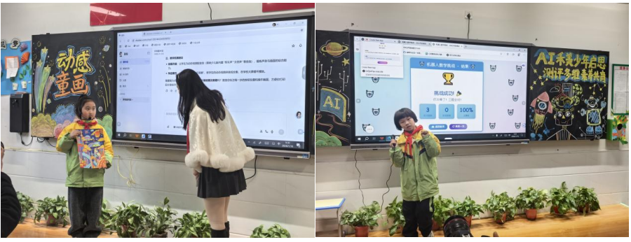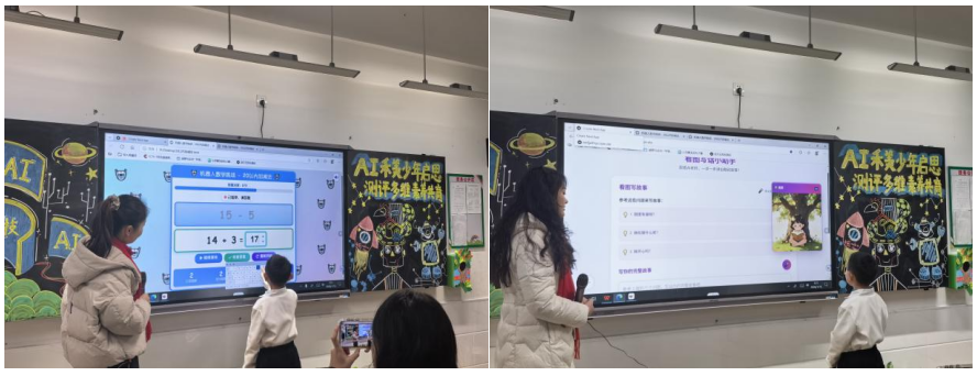 其中,“机器人数学挑战”平台聚焦20以内加减法,通过趣味互动界面、即时反馈机制,让孩子们在闯关答题中提升计算能力;语文看图写话平台则通过提供丰富的图片素材、智能引导提问,帮助学生梳理思路、组织语言,有效提升书面表达能力。这一过程中,研究生们不仅将教育理论、前沿技术与教学场景进行深度融合,更在需求分析、方案设计、技术开发、落地优化等全流程中,锤炼了创新思维、工程实践能力与协同合作精神,真正实现了“在解决实际问题中成长成才”,达成了高校人才培养与基础教育发展的双向赋能、互利共赢。