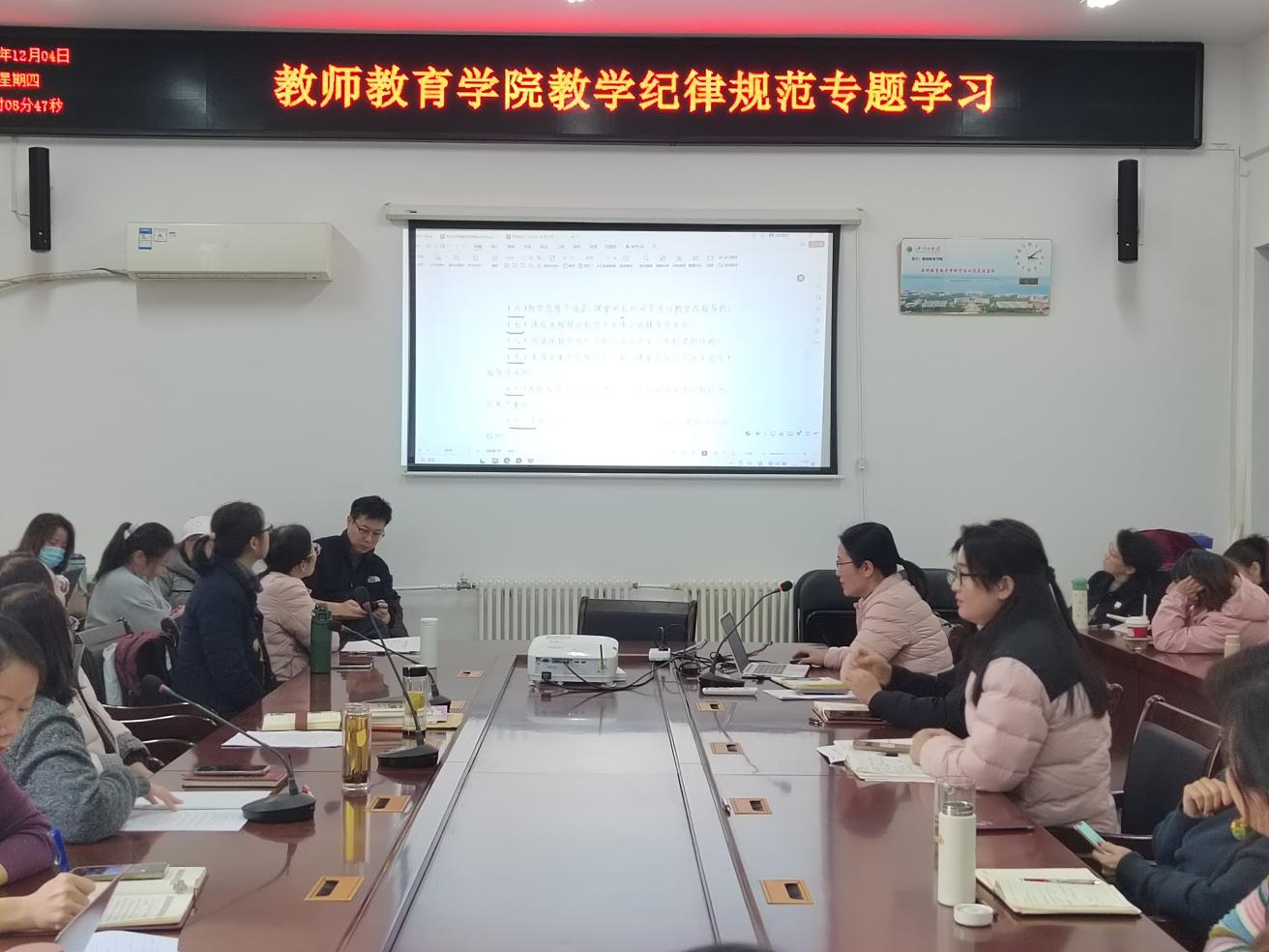 为进一步严明教学纪律,规范教学行为,维护正常教学秩序,强化师德师风建设,12月4日下午,我院在艺术楼226会议室召开专题学习会,组织全体教师集中学习《平顶山学院教学纪律处分办法(试行)》。学院院长王小鹤出席会议并讲话,学习会由副院长王淑宁主持并领学。