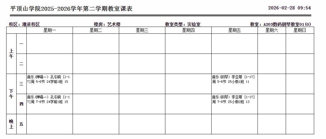 主要仪器设备:教师用钢琴、学生用琴、控制台、电脑、投影仪